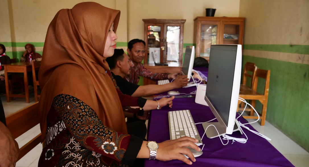 Guru dan staf sekolah dapat menjalani pelatihan tentang penggunaan PC dan internet dalam konteks pendidikan.