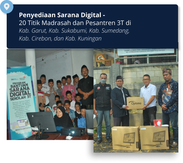 Hal ini menjadi dasar PT. Telkom Indonesia untuk menjangkau sejumlah wilayah yang masih banyak belum tersentuh teknologi digital sebagai implementasi program Sustainable Development Goals 4, yaitu Pendidikan Bermutu. Pada program kali ini setidaknya ada 20 Madrasah dan Pesantren 3T di Jawa Barat terdiri dari Kab. Garut, Kab. Sukabumi, Kab. Sumedang, Kab. Cirebon, dan Kab. Kuningan mendapatkan bantuan.